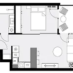 Lägenheten har ett komplett kök med kaffe/tebryggare, kylskåp och ugn samt te/kaffebryggare, sitthörna och TV. Lägenheten består av 1 sovrum och 1 badrum med separat toalett och dusch.